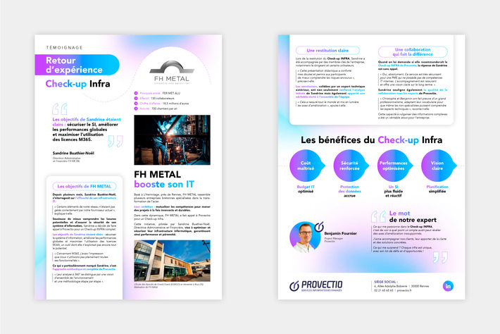 Ce support commercial bénéficie désormais d’un équilibre entre image de marque, lisibilité et impact narratif, le tout dans un univers graphique cohérent avec la communication globale de Provectio.